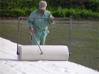 お布団農法初年度(平成18年)は、強風によるマルチの捲れで3,640uが修正できずに田植機による田植えをしていまいま
