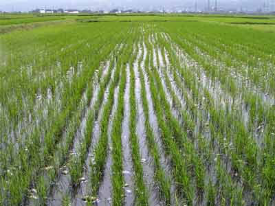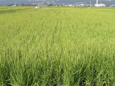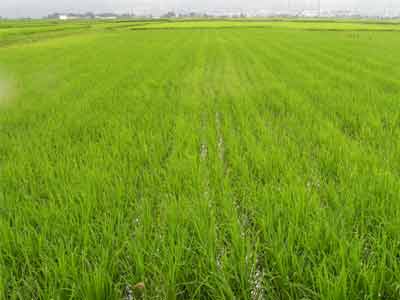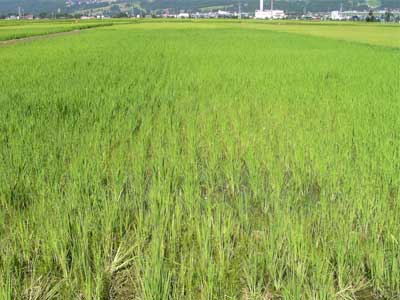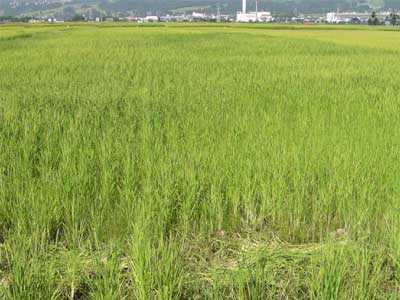 葉齢 12〜13 出穂済み 草丈100cm 草丈は揃っているが、雑草(ヒエ)が多い |