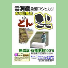 農薬ゼロ・有機肥料100% 雲洞産魚沼コシヒカリ「どん米」「エゴマ」