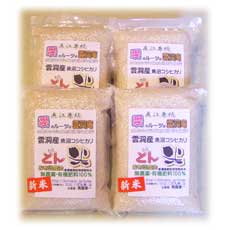| 雲洞産魚沼コシヒカリ「どん米」の精米品と無洗米品を「美味しさ!そのままキープ!真空パック」にしました。精米した米の賞味期限は2ヶ月くらいと言われていますが、真空パックで1年以上に期限を延ばすことが出来ます。とはいえ、出来るだけ早めにご賞味下さい。 |
